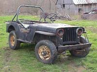 The trip took us through south central Indiana, on two lane highways, bordered by blooming redbud trees. Barry spent his youth in this part of Indiana, and it turns out the jeep came from a farm near his former hometown. The road winds through rolling hills and is doted with old farms and small towns. The trip went quickly, given we were trying to keep a lookout for treasures along the way. About the only “jeep thing” we saw was the body of a Willys wagon rusting away in a roadside junkyard. The drive couldn't have gone more smoothly, taking a little over two hours. We met Josh, the seller, in a church parking lot in a small town. We had agreed to contact him when we arrived (we were a few minutes early) and he appeared 5 minutes later, driving a large Dodge 4x4 pickup with a giant, but friendly Doberman in the rear. His brother-in-law had come along for the adventure too. After introductions, we headed to the farm and the jeep. Our towing vehicle for this JRT was Barry’s Ford Ranger 4x4, pulling a U-Haul auto transport. When we reached the farm, after turning off the main road, we had to wait for the farm gate to be opened. On the other side of gate was a path leading up and around a steep hill. We were thankful for the 4-wheel drive and the dry conditions. If it had been raining, we might have had to enlist Josh’s big truck. At the top of the hill was an abandon farm house and out buildings. The rusted hulk of a ’50 or ’51 Ford sat off to the side of the house. The car didn’t look out of place with the other farm equipment scattered about. We wasted little time getting out and walking to shed to get our first real look at the jeep. The jeep was just as Josh had described it, complete with a couple of flat tires. Josh had planned on building a rock climber, but is moving to the southwest. He had already sold the motor and seats, since he planned to replace those. The body has some rust and some sheet metal repairs, but is in great shape. There are no extra holes cut in the dash and no signs of rust or repair to frame. There was little doubt that we were getting our moneys worth. While Josh and Evan aired up the tires, Barry got the tow rig turned around and in position to load the jeep. By the time Barry had backed as close as he could to the shed, the jeep had been rolled out and was ready for loading. While we had equipped ourselves with chains, tow straps, and come-alongs for winching, Josh and Ev declared the jeep to be light enough so that we could just push it up the trailer ramps and on to the trailer bed. It took two tries to get the jeep up the ramps. The jeep rolled easily, but the U-Haul ramps were almost too far apart. The trailer is open in the middle, and as you can see in the picture to the left, the jeep just fit. On our first try, we were too far to one side, but made it easily on the second push. Josh and Ev picked up the rear of the jeep to center it. It took another 5 minutes to tie the jeep to the trailer, using the provided wheel webs and axle chains. The actual loading process didn’t take more than 15 minutes, but we added a few more minutes just talking and observing the beauty of the old jeep. We headed back down the steep path and were underway in less than an hour from our arrival at the church yard. We made one quick stop, after about 15 miles to check the tie-downs. The trailer was brand new (still had dealer tags) and it towed, and more importantly, stopped easily. Without an engine, the jeep was light enough so that the added weight wasn’t noticed and the Ranger did a great job. With the exception of a large number of cars pulling out in front of us, the trip home was uneventful - always a good thing. Back at the farm, Paula had fixed us a BBQ pork lunch and we toasted the new jeep. The post lunch inspection led us to believe the original color was dark blue, so the naming process began. We discussed “Baby Blue” but determined it was too old to be a baby, so just settled on “Ole Blue” for the moment. We pushed (Evan did most of the pushing, with Barry steering) Ole Blue off the trailer. More inspections confirmed our initial opinion that the jeep is solid. However, we didn’t find more clues to its real identity. Although advertised as a ’47 CJ2a, we had spotted a CJ3a windshield. The 3a,which replaced the 2a starting in 1949, was very similar to the 2a, with the exception of the new one-piece windshield, plus minor drive train (different rear-end) and interior body changes. Real identification marks and clues had been lost with the motor and vehicle ID tags. Ev pulled Ole Yeller along side Ole Blue, but we couldn’t see any obvious differences. Ev has since enlisted help form the Willys Tech Board to try and help us make a final determination of what we have. Stay tuned while we search for clues. Pictures: Barry's notes: Evan's notes: |