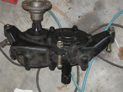 forward. The final step is to attach the flange for the drive shaft to the splined input shaft on the gear box. The Newgren instructions call for an additional spacer on the input shaft, to offset the slight rearward position of the gearbox caused by the lift frame.