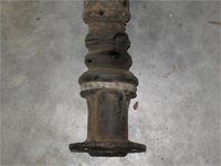This page http://48cj2a.com/ptoshaft.htm has excellent directions for the repair. Not having access to a repair kit or even a shop press, we will try doing a patch job. For now, we will give the shaft a coat of paint and try some epoxy on the boot.