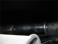 The PTO shaft is one of the more difficult items to locate. There were different lengths produced for the early CJ series, trucks and for the early CJ5s. Ole Yeller came with a complete, working PTO, so we had measurements when we went shopping. The shifter, gear box and shaft we are installing came from the same jeep. All appeared to have had little use. The only damage is to one of the rubber boots on the shaft. It has small tears, as can be seen in the photo. Replacement boots are available (we have one), but changing them is a complete adventure.
